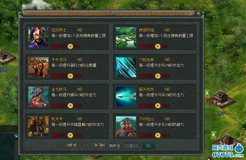 每个玩家的武将数量非常少,需要通过升级科技中的招贤纳士来增加武将的数量。