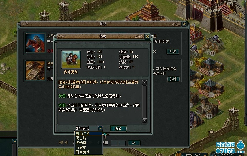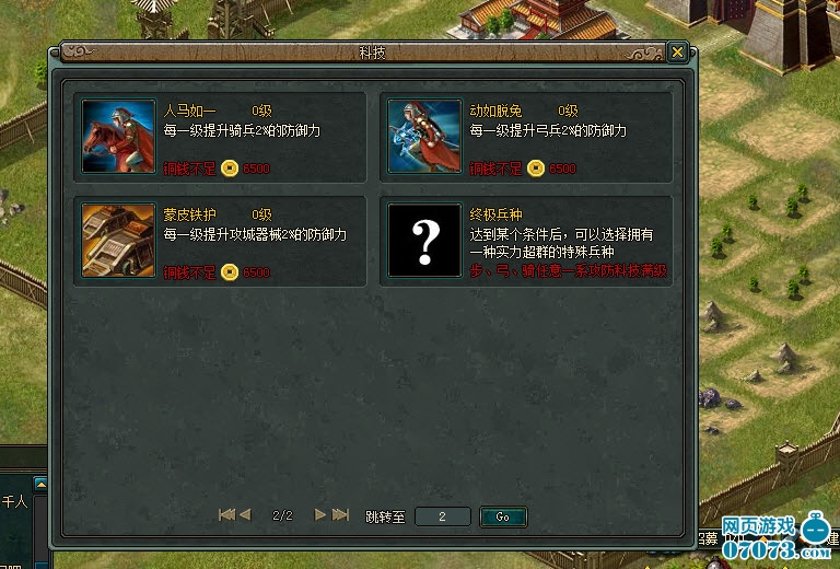 每名玩家一开始只能招募初级兵种,通过升级科技才能招募到高级兵种,值得一提的当玩家将某一特殊提升到攻击防御全满的时候,可以出现超级兵种。
