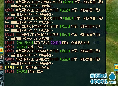 在玩游戏的时候常常有人说《千军破》是《三十六计》的升级版,可以说《千军破》游戏的战争系统采用了非常强大的军团作战机制,个人的能力在战场上起到的作用并不大,越到游戏的后期越需要玩家们共同进退,游戏中经历了短暂的攻占系统城池以后,就是玩家与玩家之间的对抗,团结一心的势力最终才能走向胜利,当玩家们可以统一时间攻打城池的时候,那么不管有多少人都是可以进入同一战场的,所以需要玩家们精确的计算好时间,最方便的是不管哪里发生战斗,系统都会公布出来,玩家只需点击城池名称就可以看到战场的位置和战斗的情况。