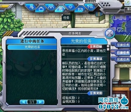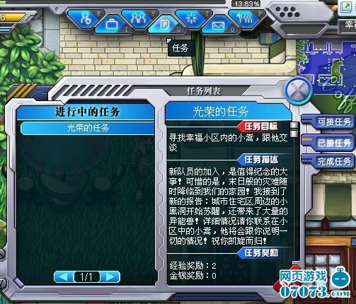 点击上方的“任务”按钮就可以随时跟进“可接任务”、“已接任务”和“完成任务”。可接任务是看到提示后,自己去寻找对应的NPC获得,当接到任务后将会转移到已接任务中;可接任务中不显示的部分任务,需要自己在城镇中寻找NPC接得,那些一般都是支线任务,赚钱赚经验的好方法,当完成某些任务后,还有机会接到奖励丰富的机密任务哦!