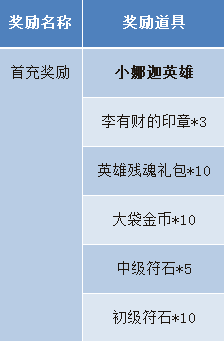 活动内容:在开服期间首次充值任意额度都将获赠价值2888钻石的"首充奖励"一份(详见下方奖励展示)。