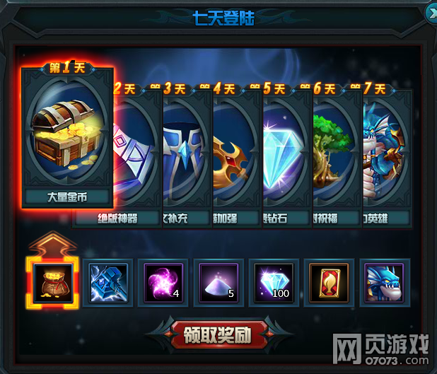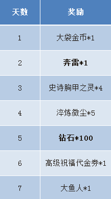 活动内容:开服七日庆典,每天都可以领取登陆奖励,连续登陆送钻石送限量绝版神器奔雷,还可获得大鱼人英雄哦!