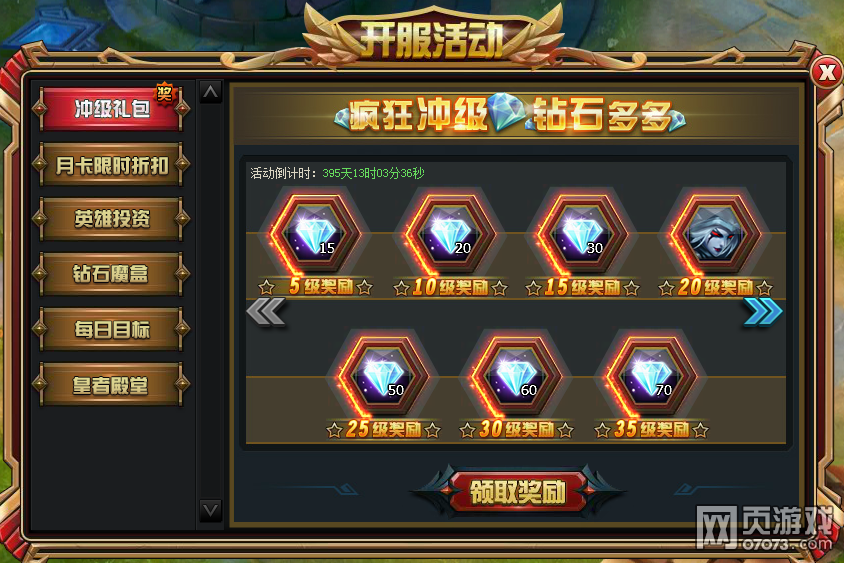 活动内容:首服开服期间内,达到3级后,就可以领取钻石奖励,提升更高等级能获得更多哦!