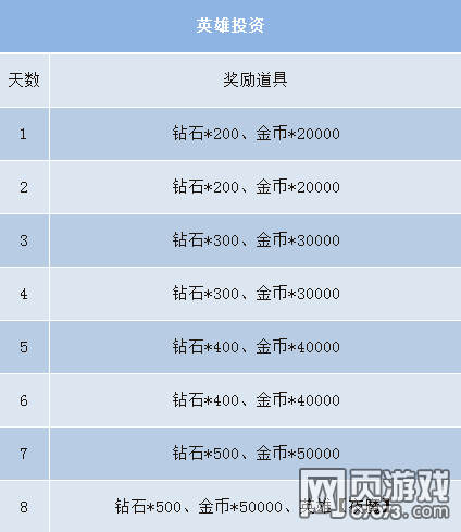 活动内容:开服7天内花费888钻石+888刀券购买“英雄投资计划”,每天可以领取钻石+金币的奖励,在第8天还可以额外获得英雄【夜魔】,极品珍稀经典英雄,先到先得哦!