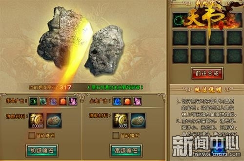 紫霞游戏天书世界中的宝石系统独树一帜,与其他游戏中的系统宝石系统相比算是真正的“轻松,便捷”,很多游戏中,为了获取高级宝石,需要没日没夜的挂机、打boss 、打做任务才有概率获得,耗时耗神,在该游戏中,您只需要花费您手中的铜币,就可以进行赌石,赌石的过程中不仅充满惊喜与期待,而且还有概率赌到高级宝石噢!