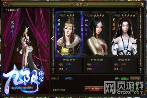 在江湖武林之中,美人倾国倾城颜,总会引起一些小人的觊觎,因此作为侠客也作为君子,你需要保护美人不受恶人的侵害。在大黑《九阴绝学》中,武林选美的举办,汇聚了众多名动天下的红颜,你可以主动承担起护送她们的职责。将美人成功护送至安全地时,你能够在虏获美女芳心的同时,获得丰厚的奖励。