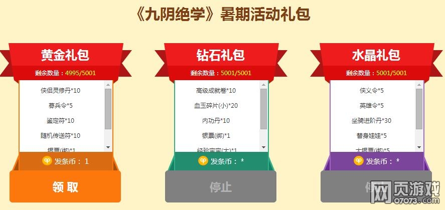 发条币可以领取暑假超值独家礼包,礼包内容如下