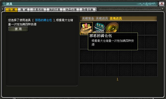 在黑店中,您有机会获得极品装备,同时还有各种邪恶道具来挑战玩家的运气!比如可遇不可求的邪恶神品——资源满仓包!只要您拥有这个道具,就可以随时让自己基地的仓库中铺满所有的资源。在战争策略网页游戏中,资源是何等的珍贵,如此强悍的道具绝对会让您欲罢不能。