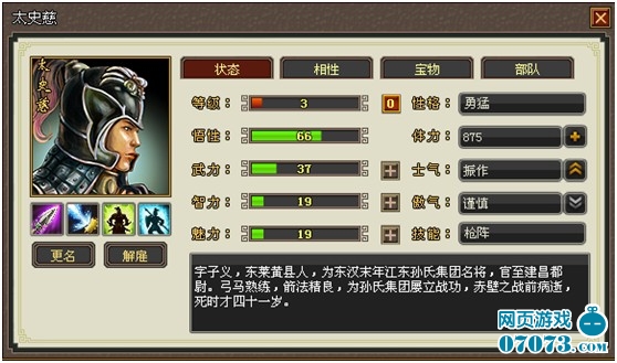 我们的建议:英雄除了有武力、魅力、智力,更是融入了英雄的各种状态和性格色彩。例如:体力将影响英雄的行动力,没有体力的英雄将无法执行任何工作;士气和傲气将分别影响战斗连击率以及攻击落空率;而英雄每升一级,属性点的增长将依据英雄的性格偏向侧重点有所不同,另外每级还有1点属性点让大家自由分配。