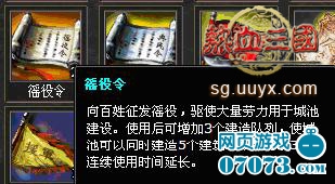 徭役令的作用不仅是在前期,在中后期,甚至贯穿整个游戏,都有相当重要的比重。每当玩家新建了一座分城,并运送了大量的资源用于支援发展,往往会发现等待建筑队列的时间是如此的难熬。不用焦急,可曾注意到徭役令的效果是同时针对玩家的所有城池吗?