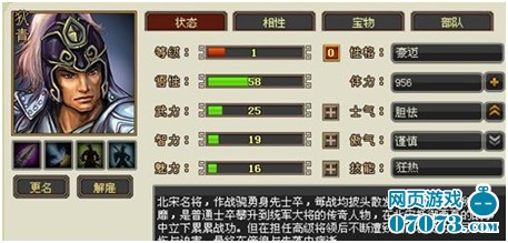 智勇双全的宋朝名将狄青是《三十六计》中步兵第一英雄。其天生的步兵相性能提供恐怖的30%的“狂热”技能发动率,而技能发动时每1点武力又将提供额外攻击伤害,屠杀对手的弓兵简直砍瓜切菜,是典型的步兵系DPS英雄。