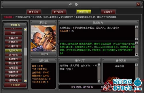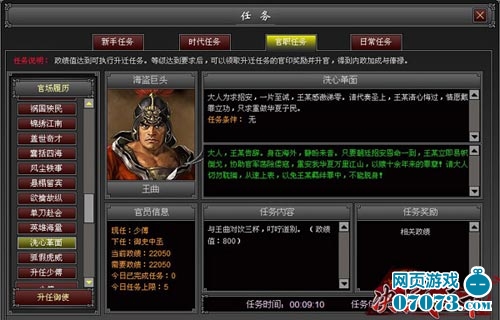 也许对于初入《决战天下》的玩家来说,官网主页那简短的背景故事介绍是对游戏历史舞台的简要概括。但是,随着玩家对游戏的不断深入,你会渐渐的发现,这几百字的介绍实在难以令人满足了。其实,在玩家进行的官职任务过程中,你同样能够对游戏的背景故事发展有深入的了解。