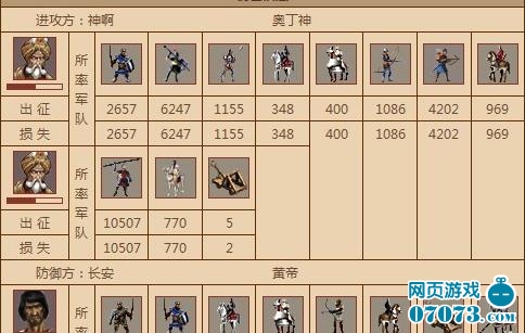 防守方:黄帝,总兵力:70990 仅存4702名“长矛兵”,主帅阵亡。