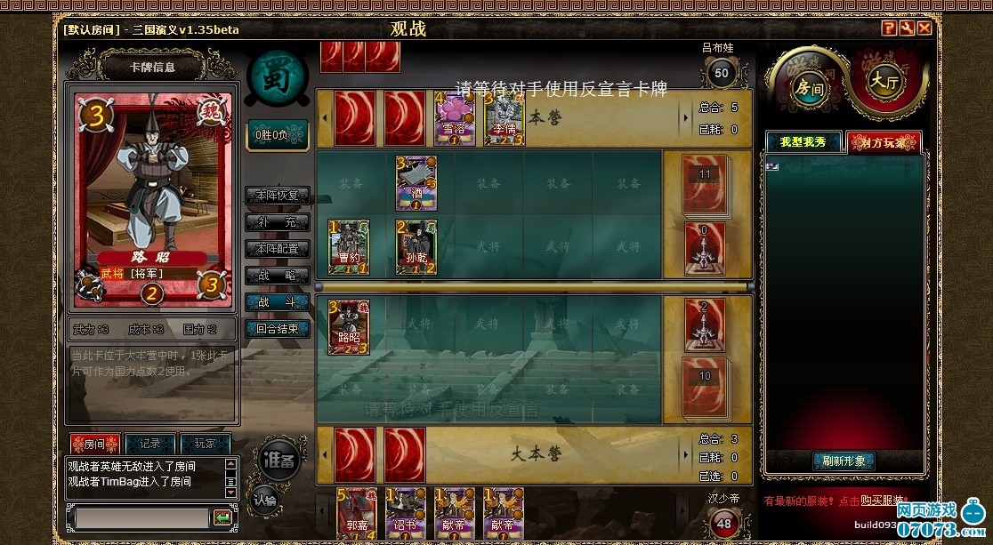 这款由CCTV辉煌动画品牌授权,国际知名动画公司Takara Tomy、GONZO ROSSO协同九维网开发推出的卡片游戏《三国演义之群英争雄》,是国内第一款益智卡牌类网页游戏。在经历了10天的二次封测,广大玩家为《三国演义之群英争雄》提出了非常多的游戏建议,为后期更加完善《三国演义之群英争雄》推出打下坚实的基础。第二次技术封测结束后,压力测试也在紧张的筹备中即将到来,将玩家们的神经绷得更紧了。