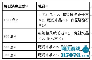 2,消费送礼:活动时间内,每日累计消费满300、600、900、1500点的玩家将获得不同档次的礼品;