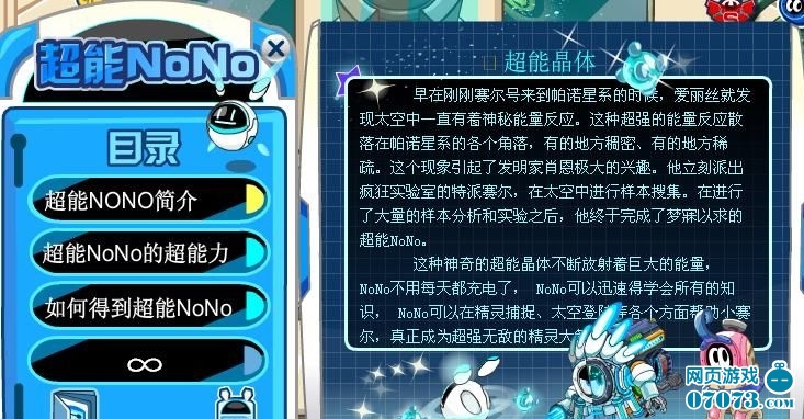 由淘米网络开发的另一款儿童游戏《赛尔号》同样深受玩家的喜爱,并且获得了很好的口碑。游戏中玩家为了寻找更好的生存环境,为了探索更好的能 源,开始通过赛尔机器人去套索茫茫宇宙。儿童玩家可以通过游戏学习到很多科学知识,真正的做到了寓教于乐。游戏有一个机器人叫超能NoNo,它可以 100%捕捉到想要的精灵,外观华丽,工作能力超强,每周都可以领到免费工资,获得专属装备、基地设施,随意进入场景无需更换装备。看着这些特权大家都十 分眼馋,当然这些不是每个人都有的,这是需要每月10元钱作为代价的。
