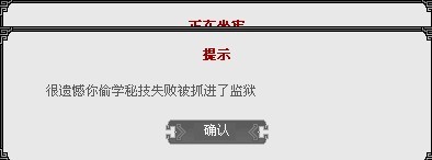 既然谓之偷学,当然也是有风险滴。如果偷学失败将会被抓进监狱,进行一趟10分钟的监狱之旅。当然,牢狱的生活的无味的,这个时候你就可以使用道具或者点数买通狱头立即出狱或者加速坐牢时间,或者趁这时间反思总结下偷学经验,10分钟以后就又是一条好汉了。
