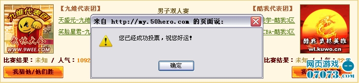 2009年12月13日,九维网第一届“东风标致杯”武林大会正式开赛。同时,为所有《武林英雄》玩家准备的有奖竞猜也同步展开。