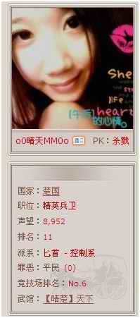 晴天MM:呵呵,还好啦,我就是比较喜欢玩游戏,也觉得《武林英雄》非常不错啊,所以就发动了身边的人都在玩!
