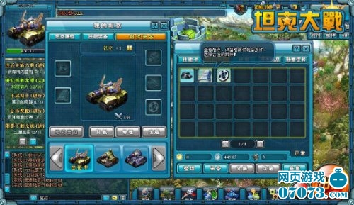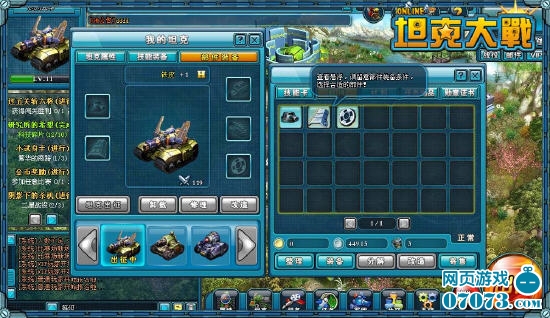 修理:选中部件装备页面中已装备在坦克中的部件,点击修理按钮可以通过花费一定的银币和石油将部件恢复为满耐久;