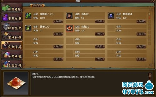 豹 胎 丸:将宠物等级变为0级,并重新随机生成资质、属性点和技能,每次消耗1个。