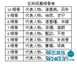 名将按根骨2~10分成9档,名将每十级,根骨为多少点就能获得多少点的属性。