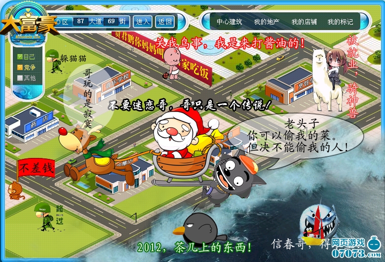 本图,结合网络流行语言,流行表情,流行电影《2012》,流行游戏《大富豪》,以及来临的圣诞节拼图而成。