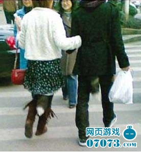 小编在网上看到了这则名为《如此“前卫”你能接受吗?》的帖子,帖中附带的照片上是一对年轻情侣的背影,他们正手挽手走在人来人往的街头。 其中的女子身着白衣、花裙、长靴,衣着时尚,但从她的裙底竟晃荡着一条狐狸尾巴,而被她挽着的男子的长外套下也同样冒出了这样一条狐尾。