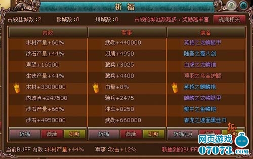 祈福系统喜上线,让你拥有的不仅仅是荣誉,为来年的生活祈福,为征战的霸业鼓劲。全新幸运符、幸运令道具更能给你带来意想不到的乐趣,资源、装备、BUFF加成,就让我们一起在征战的大陆点燃新年的礼花吧!