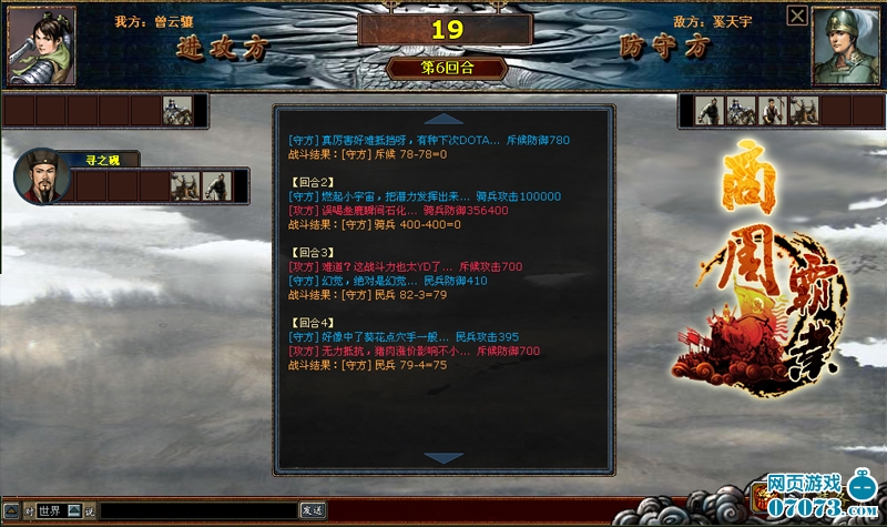 在《商周霸业》中,合战系统是最大突破,你不再被局限于普通网页策略游戏的1VS1模式,最多可以支持5VS5。想要合战,武将当然不可缺少,《商周霸业》独特的将领养成系统,摒弃以往武力决定一切的游戏规则,将智谋、内政、法宝加入其中,使玩家可以多方面来培养自己的将领。养成游戏的各大元素加入到升级、装备、分配点数、发展方向等;武器也不简单是打造就是一切。