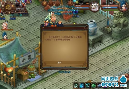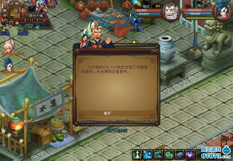 《江湖》扬州大街单证负责各地缉拿江湖大盗的事宜,各位大侠可以到单证处领取“十二星相”的任务,任务会指示你到某地图处缉拿某江湖大盗,具体任务会说明地图坐标和大盗名称。领取了任务,各位大侠便可以去惩恶锄奸了。不过要注意哦,为了避免大侠您势单力薄,任务会要求你必须是3人以上队伍才能做。
