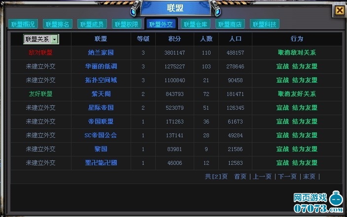 通过联盟外交可以把任何侵犯我家园的敌人设置为敌对联盟随时可以宣战、也可以把在危难时刻伸出援助之手的战友团视为友好联盟,对于井水不犯河水的联盟和平共处,共享安宁宇宙空间。