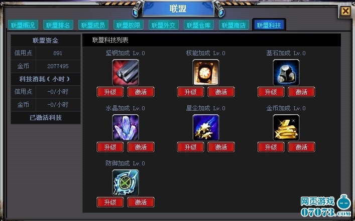科技是第一生产力、科技的发展速度决定了联盟是否国泰民安、丰衣足食、《星球大战》联盟7大科技助您定国安邦。坚刚加成、核能加成、基石加成、水晶加成、星尘加成、金币加成、防御加成、每个科技级别的高低决定了联盟势力发展的速度以及人们奔向幸福安宁生活的保障。可通过激活然后再升级根据不同阶段不同需求来升级不同科技,比如联盟缺钱、选择升级金币加成、联盟保护力量弱可选择防御加成、联盟电力不够可选择核能加成等,更详细的需求请大家自己体验吧。