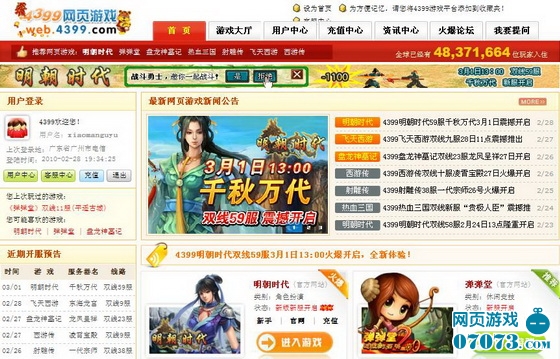 4399网页游戏平台全新版本于2010年3月1日正式上线,与4800多万玩家同台畅享游戏之乐!全新的设计,全新的视觉,全新的功能,让您在网页游戏的巨浪中冲刺,体验非凡的快感!