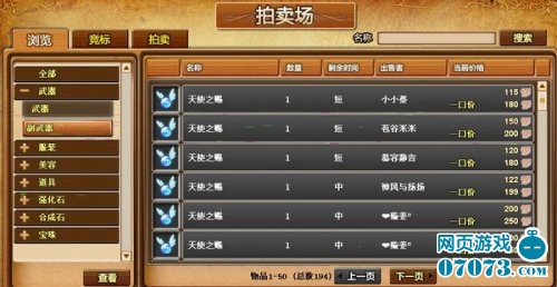 拍卖场中所展示的物品种类繁多,有武器、服装、美容、道具以及强化石、合成石、宝珠等等。而每一种类都还有自己的细分物品,同时物品的竞拍时间和价格也有规定和显示,当然这都是由出售者来定的。特别是起始价格和一口价,也只有出售人有权规定,这就有点“我是商家我做主”的意味。而作为买家来说呢,竞拍的物品如此之多,自然要慎重考虑,谁叫咱“我喜欢我选择”呢。