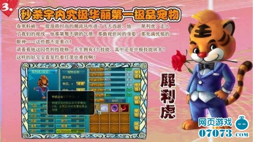 继摇滚虎、乖乖虎之后,小虎队第三员犀利虎闪亮登场,接受挑剔玩家大检阅。高属性,高成长,天生拥有4个包括中级技能,呼啸山林者唯有犀利虎。玩家在5月16日23:59之前,只要单笔充值100元人民币就能把它领回家。引虎入室,约战4399飞天西游。