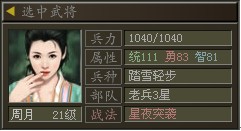 点评:真的不好点评,攻击力不占优势,防御力低下,无特技的武将该何去何从!