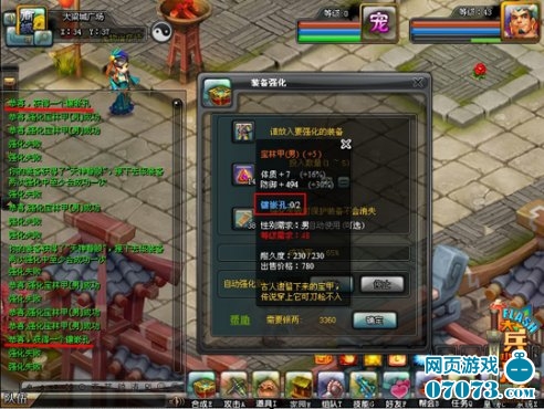 (1)装备在强化过程中,强化到+3、+7时,有几率获得镶嵌孔;