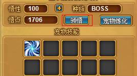 悟性高低1,最高100,悟性的大小决定宠物每升一级获得的悟点点数;领悟技能是指领悟宠物自带的技能。