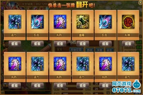使用悟点领悟技能,采用的是翻牌形式,甚至还可以偷看,比较有趣。