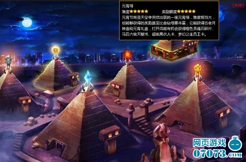 元宵佳节,点过花灯,更要闯一番元宵塔,自由城的不夜天永远荡漾着每位大亨勇往直前的激情和魄力。天空中惊现的元宵塔,或许通关难度有点大,但能够获得的奖励远远比任何塔要丰富,除了以往获得的古老月神盒等奖励外,还能再获得元宵佳节特别准备的厚礼——元宵礼盒!任意一种礼盒打开后能有机会获得橙色灵魂石碎片、马匹六级天赋书、公主员工卡等罕见稀有道具。双重礼盒大奖,欢腾元宵夜!