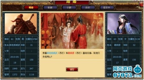 有缘来相会,千里姻缘一线牵!灭神世界中的爱情与众不同,你也可以在这里举办类似《非诚勿扰》的相亲大会,为你的英雄招亲,牵线搭桥。如果你帐下的男性英雄已经到了可以结婚的年龄,并且达到了60级,想为他找一门亲事,却又苦于没有自己没有女英雄可以相配,那你不妨为他进行征婚吧。只要加入了联盟,那就可以向同一联盟内的君主发起联姻了。一旦联姻成功,英雄便可以诞下两个子女。如果玩家想要联姻,那就赶快加入联盟吧。和同一的联盟的君主进行联姻,不仅能够增进感情,还能够使联盟以及自己的实力更上一层楼。提亲成功后,便可以进行婚配了。联姻成功,可是会受到同一联盟内所有亲朋好友们的祝福的。
