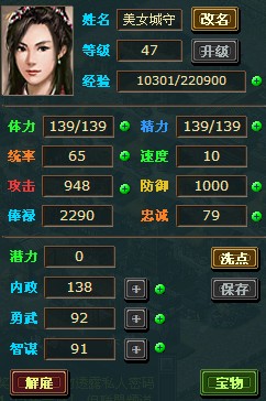 ¡¡¡¡Ò»³Ç£º×î´óÈË¿Ú72100 ³ÇÊØ32¼¶ 32ͳ˧ ÄÚÕþ102 ͳ˧¿Æ¼¼7¼¶