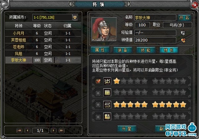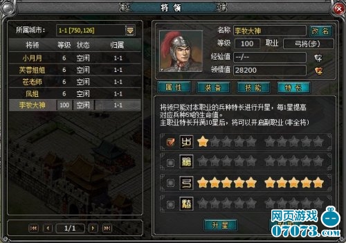 神秘的副职业:当你的将领主职业特长升满10星后,将可以开启将领的副职业并继续升级你的特长,而使用这种方式可以达到和你主职业同样的效果。