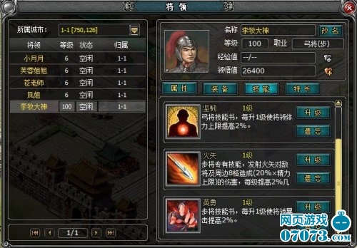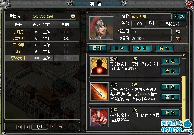 弓将:箭雨、坚韧、乘风、连弩、瞄准、大喝、怒吼、庇护