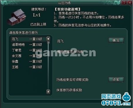 在客房处可以指使侠客外出历练,来获取奖励。