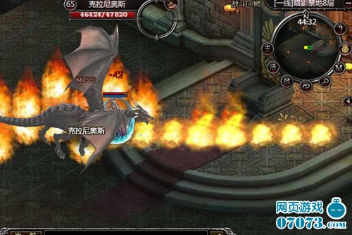 看着满屏的火焰就知道了,克拉尼奥斯绝对不是一般角色,我64级法师,拥有减伤翅膀,并且装备着满级火舞九天、火墙以及雷神之怒都不能轻松灭掉这条龙儿。这条龙儿还会自动加血,每次加血500,而我每次攻击才能秒杀下去300多滴血左右,拥有将近5W滴血的克拉尼奥斯绝对是最狠角色。不过为了60级的阿喀琉斯稀世装备,拼了小命也要争取到手!