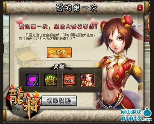 爱的第一次,绝色大乔在等你!这图片,这文字,很暧昧的有木有。谁说游戏是有钱人的天下,在要玩《龙将》里,谁也能得到这美丽的绝色大乔!心动了,心动了!赶快来把这妹子拿走吧!
