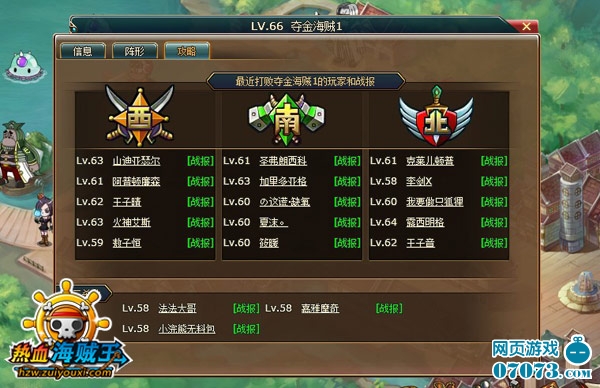《热血海贼王》中,玩家的战斗经过都被保留下来,存放在服务器上,生成战报。所以,当你有副本推不过去的时候,可以在攻击敌人之前查看一下其他高手的战报。系统会为玩家保留15个最近胜利的玩家战报以供参考。有了这些攻略参考,伟大航路上的通关就会更加轻松。