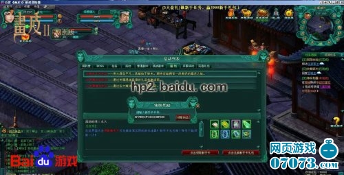 豪礼一:“新手礼包”。玩家可在等级达到10、20、30、40、50、60连续打开该礼包,“九转还魂丹”、“打星石”、“礼金”等总额价值5999元宝的游戏道具。